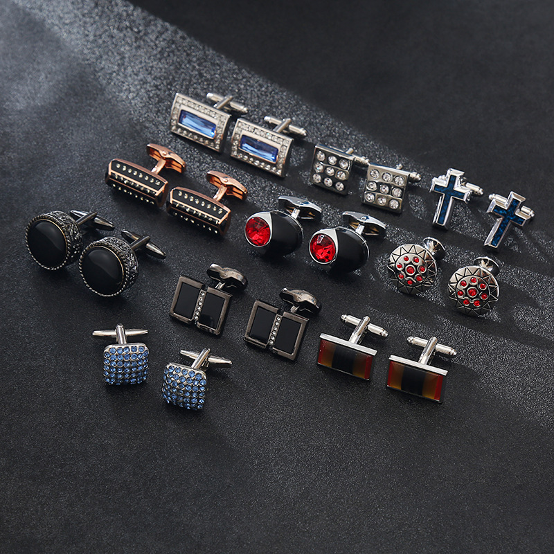 メンズビジネスフレンチカフスレッドクリスタルスクエアハイエンドシャツカフスボタンソースファクトリー