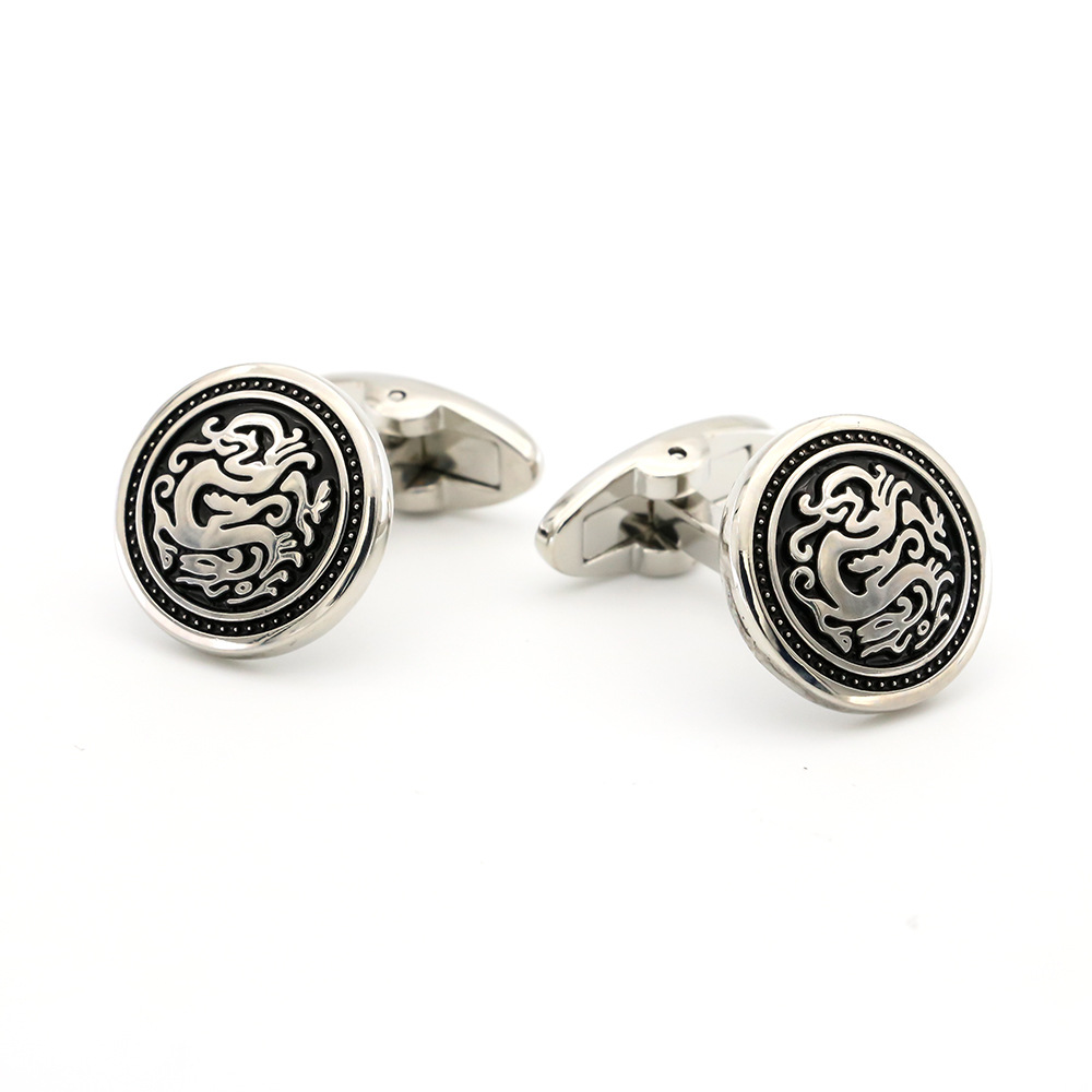 クラフト中国風トーテムラウンドシルバー動物ドラゴンカフス男性アクセサリーフレンチカフスcufflink