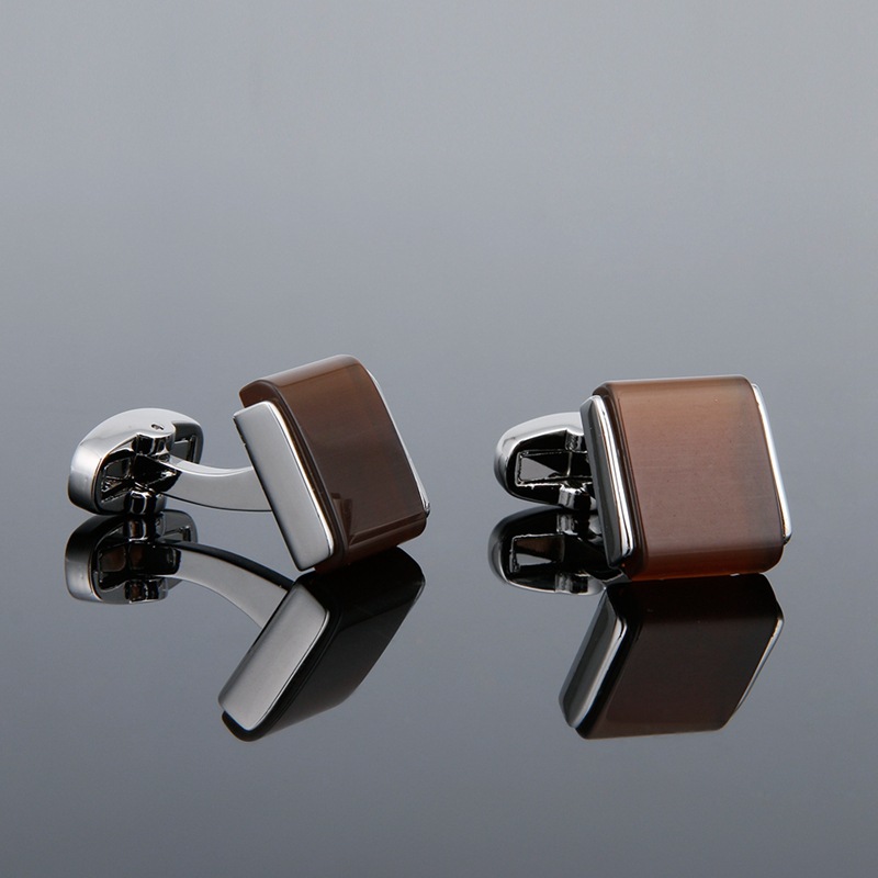メンズカフス高品質軽贅沢フレンチ茶色猫目石角型シルバーカフスボタンxk18s025