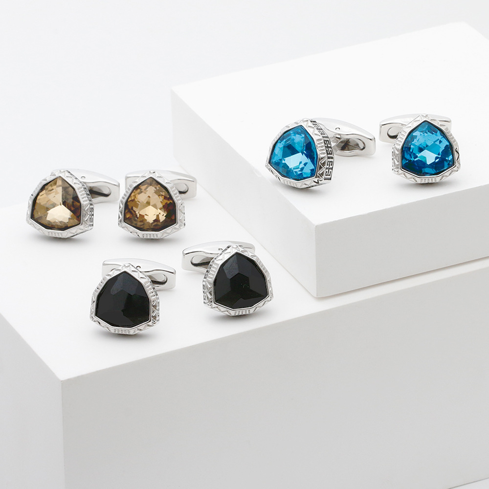 メンズカフスボタン 軽奢フレンチスタイル 三角形 クリスタル付き ヴィンテージシルバー シャツアクセサリー 1ペア 卸売販売