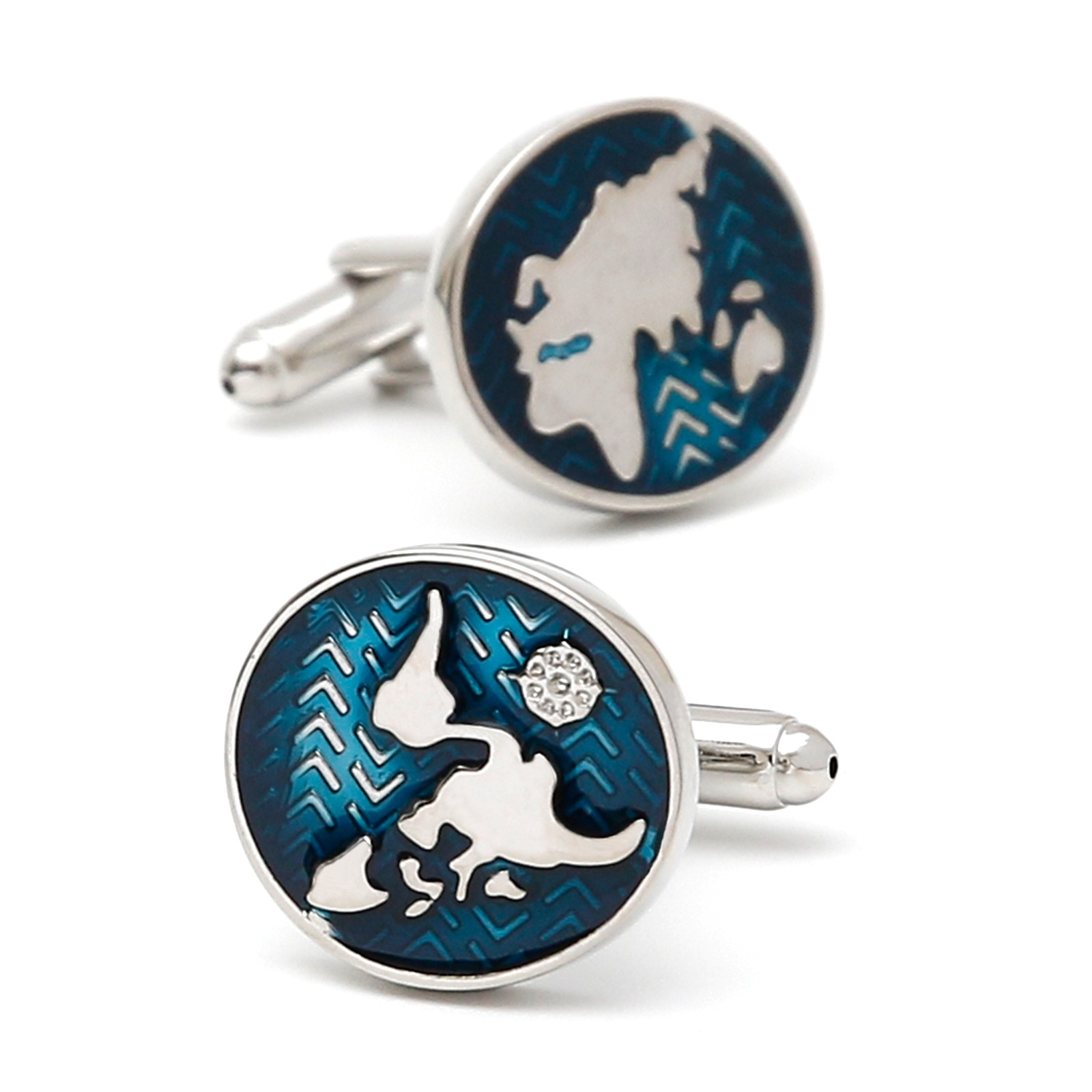 在庫あり ジュエリー クロスボーダー シンプル 個性的 クリエイティブ 世界地図型 シルバー メンズ シャツ カフスボタン 1ペア 卸売