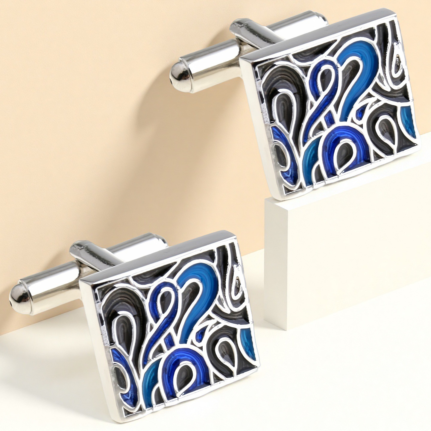 [現品1対でバッチ] 正方形の青い花柄の男性シャツのカフスのフレンチカフスcufflinks