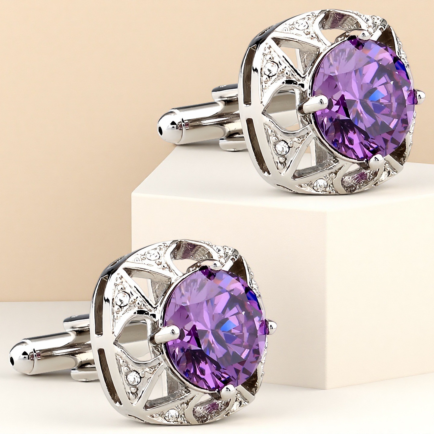 上質なフランスの袖口のカフスの男性のジルコンのカフスのオーストリアの水晶のカフスの紫色