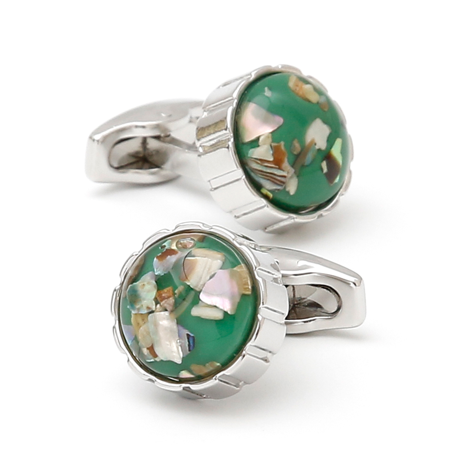メンズカフスボタンクロスボーダー個性的クリエイティブ緑ベースカラーストーンラウンドシルバーシャツカフスボタンsoccer 23016