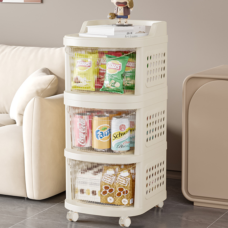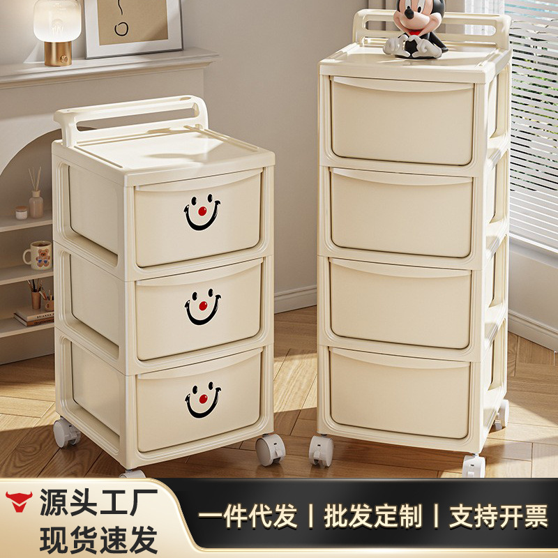 クリーム風引き出し式家庭用カート客間玩具乳児間食ロッカー多層移動棚