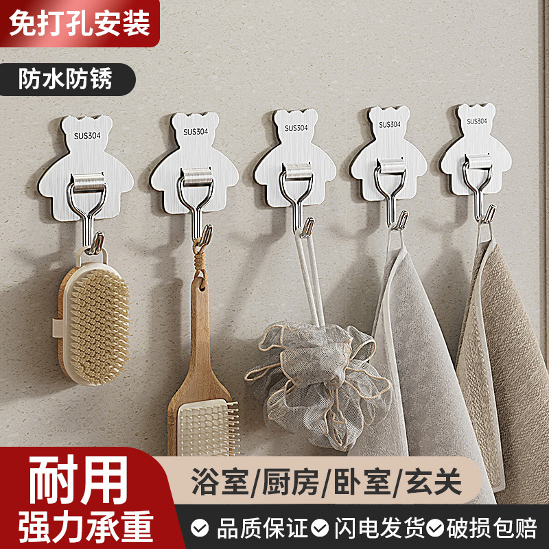 304ステンレスフック強力フック穴なしベアー台所浴室金属フードフック