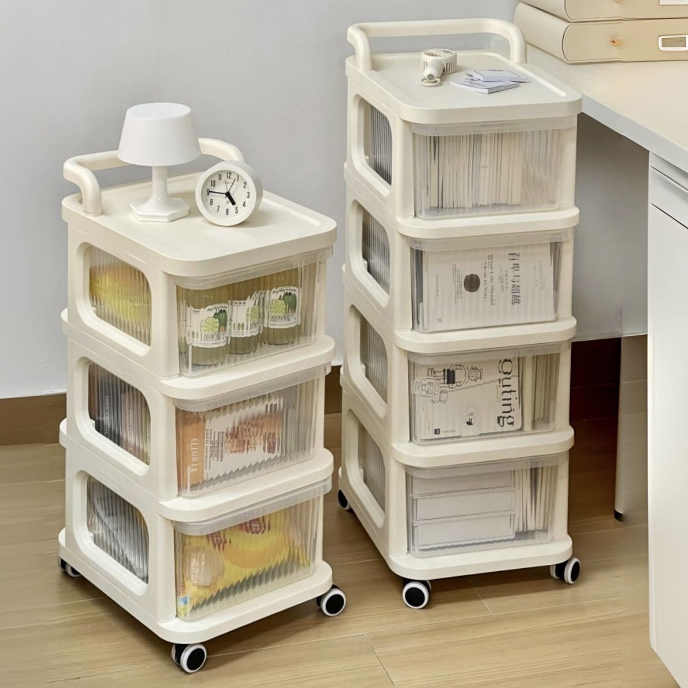 Dali 収納引き出し型スナック収納ラックリビングルーム収納ラックホームモバイルクリームフロアおもちゃトロリー