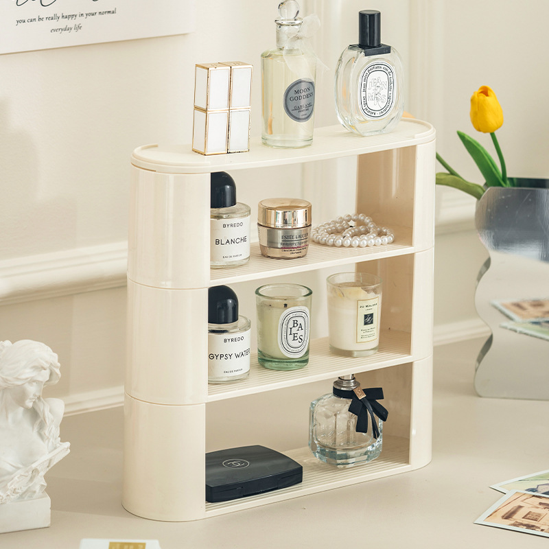 クリーム風デスクトップ棚化粧品スキンケア収納棚手作りブラインドボックス展示棚多層重ね可能