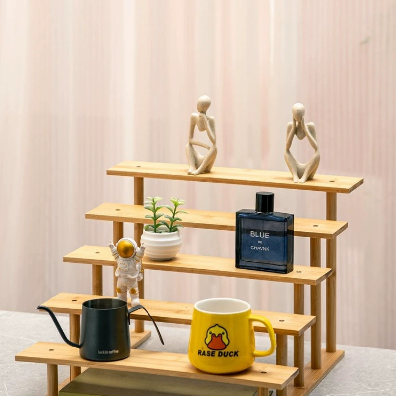 手作りディスプレイラックデスクトップ収納ラック台形階段ディスプレイキャビネットテーブル木製化粧品ブラインドボックス収納ラック