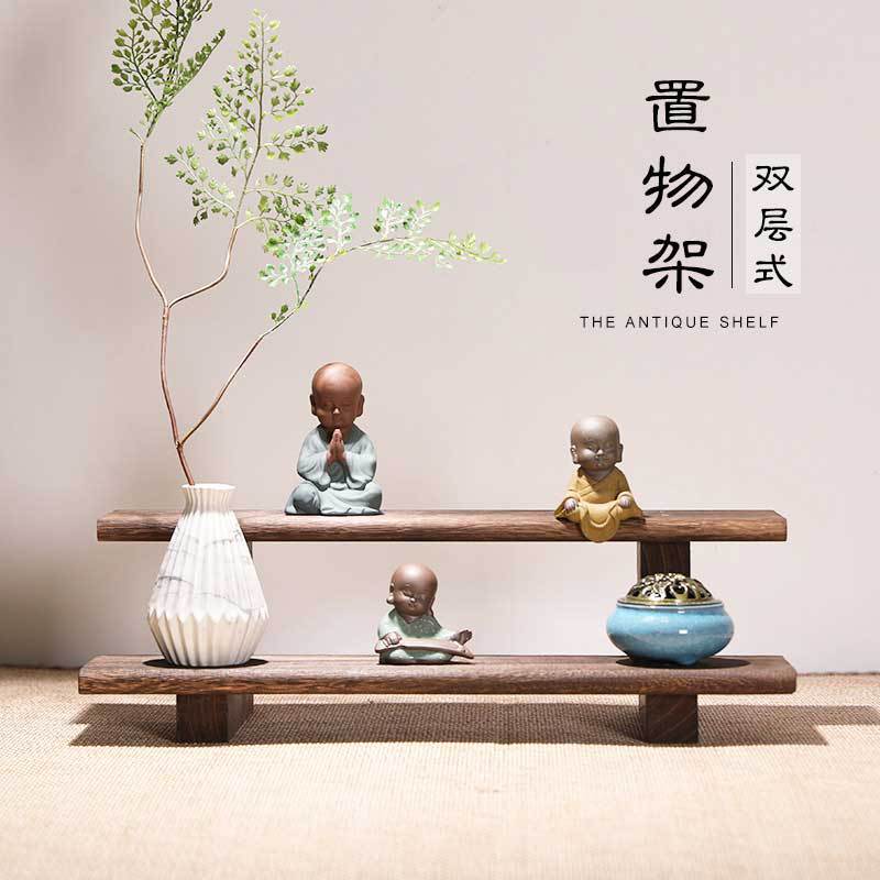 家庭用の実木の棚の多層のデスクトップの人形の置物の展示棚の実木のデスクトップの収納棚の手で物を置く棚