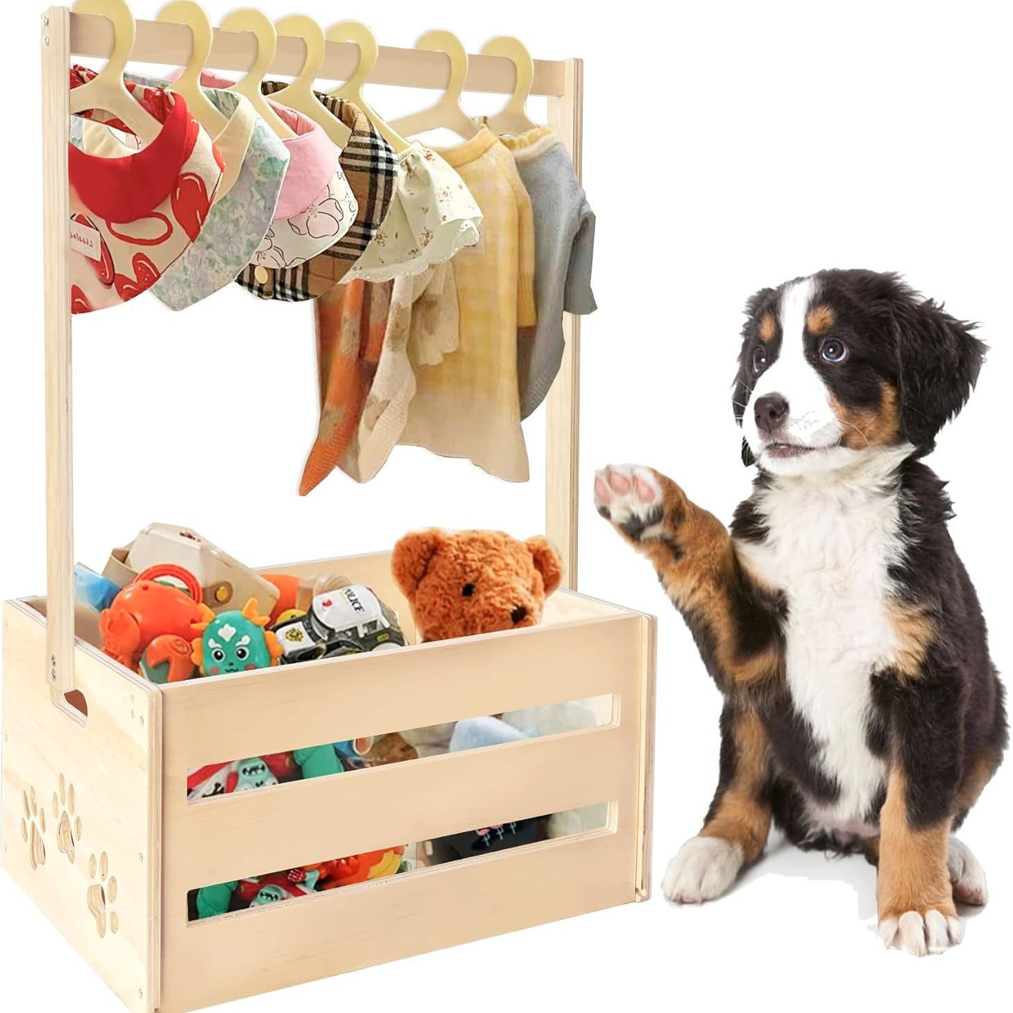 木製のおもちゃ箱ペット用品収納棚犬服ハンガー猫犬収納ボックス木製ペット玩具バスケット