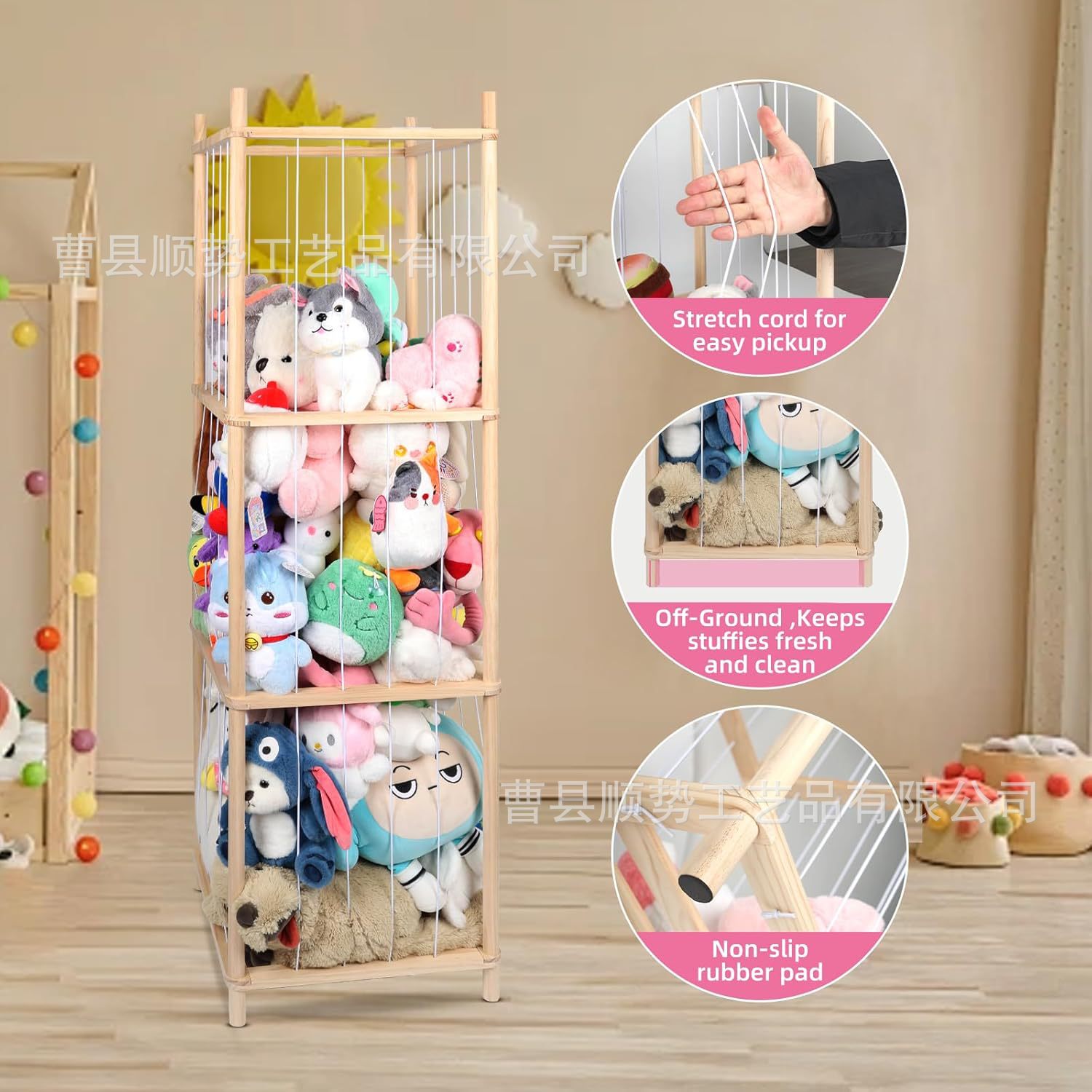 木製ぬいぐるみラックホームベッドルームリビングルーム動物おもちゃ充填ケージ無垢材収納ラック人形整理ラック