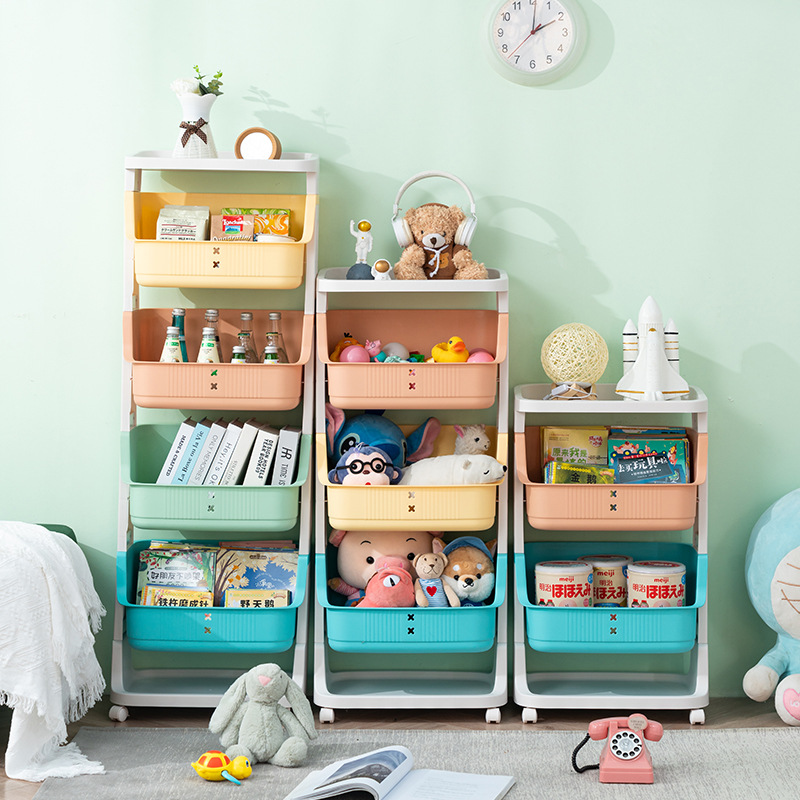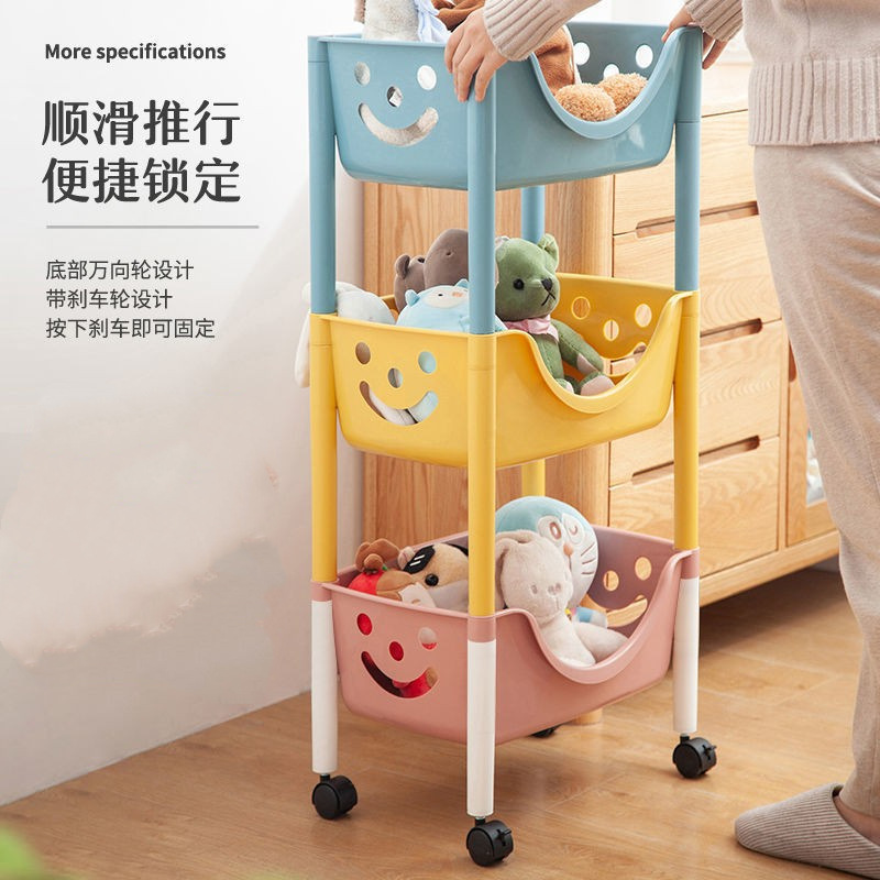 スナック棚カート床置きプラスチック多層家庭用移動可能収納棚子供用玩具ロッカー