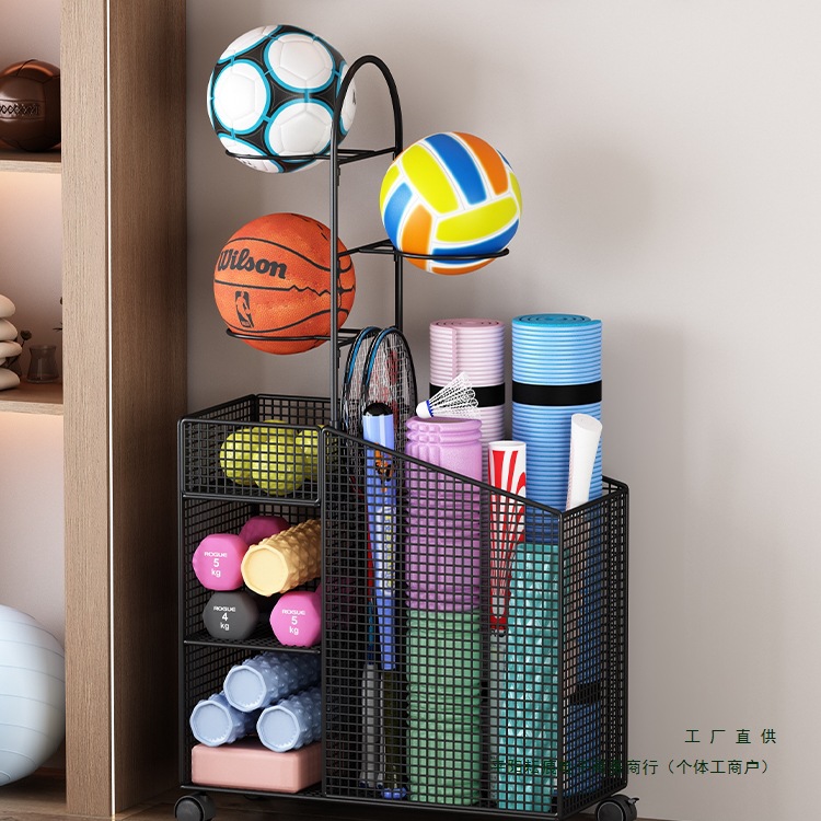 ヨガマット収納バスケットホイール付きフィットネススポーツ用品収納ラック家庭用取り外し可能なおもちゃバスケットボール収納ラック