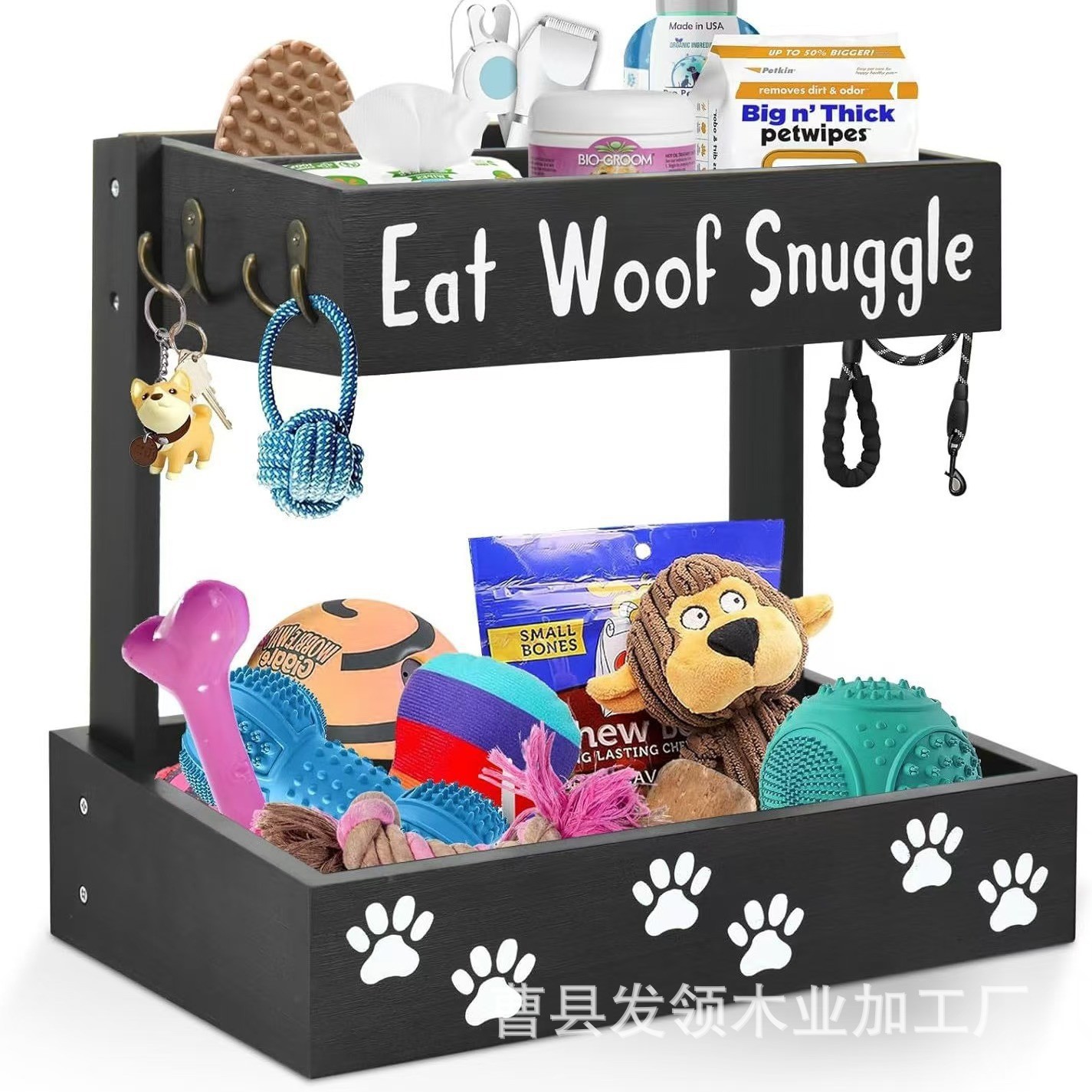 木製家庭用収納ラック犬のおもちゃ家庭用リビングルーム収納ラック無垢材二層ペットスナックオーガナイザー