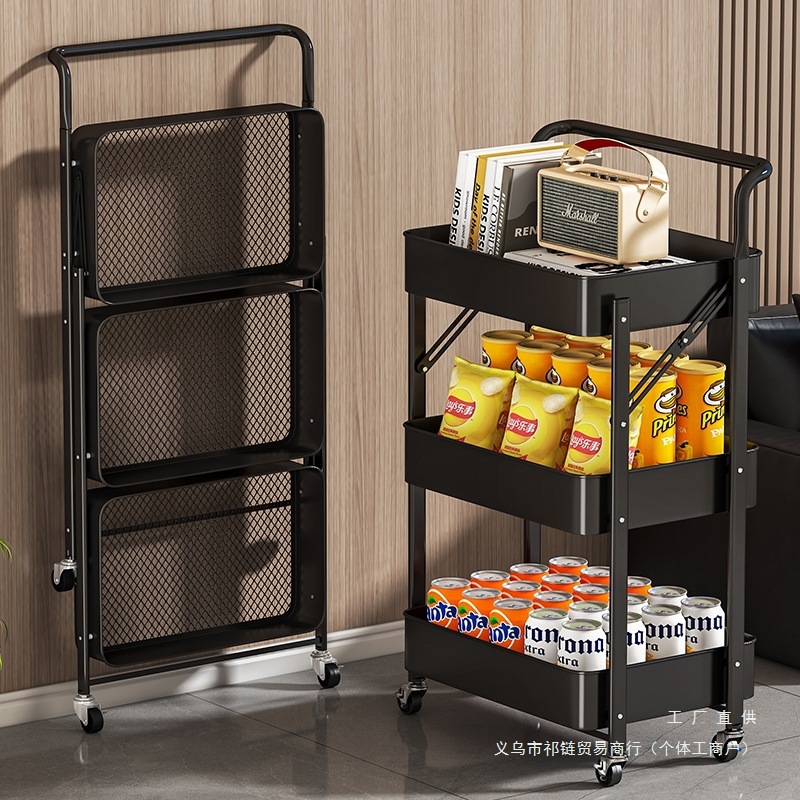折りたたみトロリー収納ラックキッチンバスルーム床置き寝室ブックモバイルベビーおもちゃスナック収納ラック