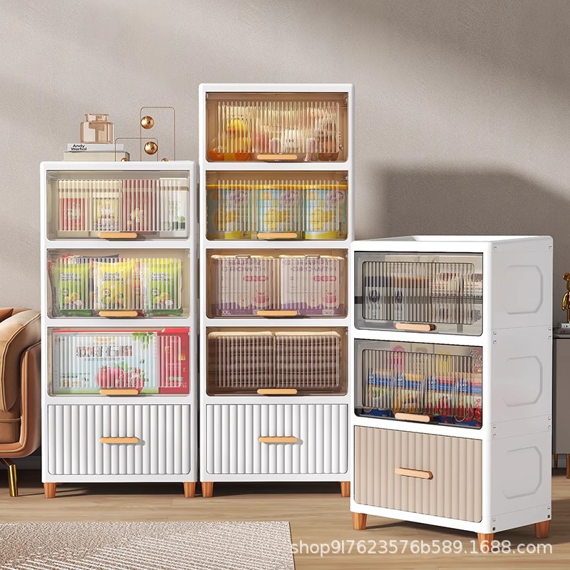 客間寝室の物置棚間食収納棚床置き整理棚子供玩具プラスチック収納棚