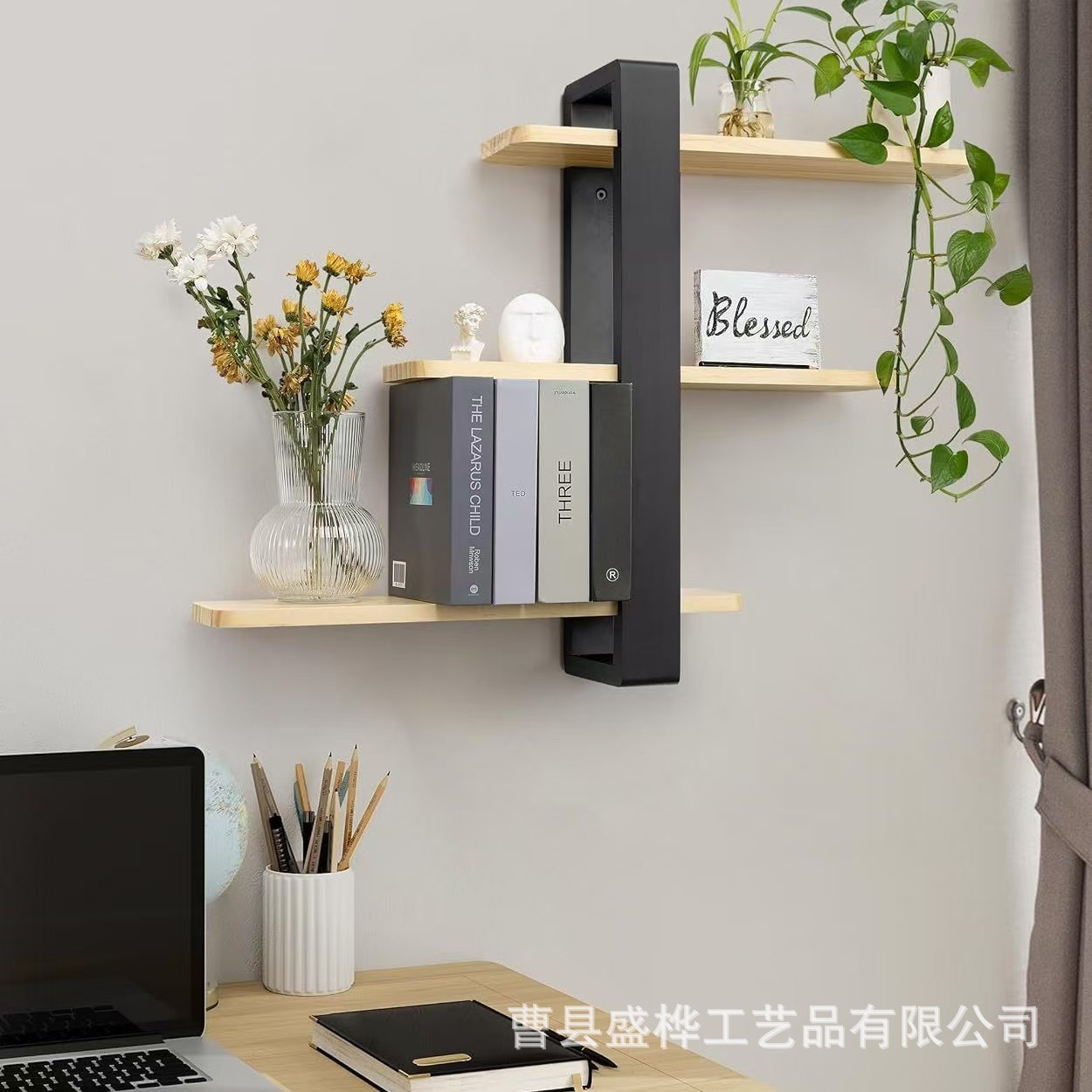 木製懸濁仕切り棚寝室壁面鉄木結合収納棚本玩具整理装飾棚
