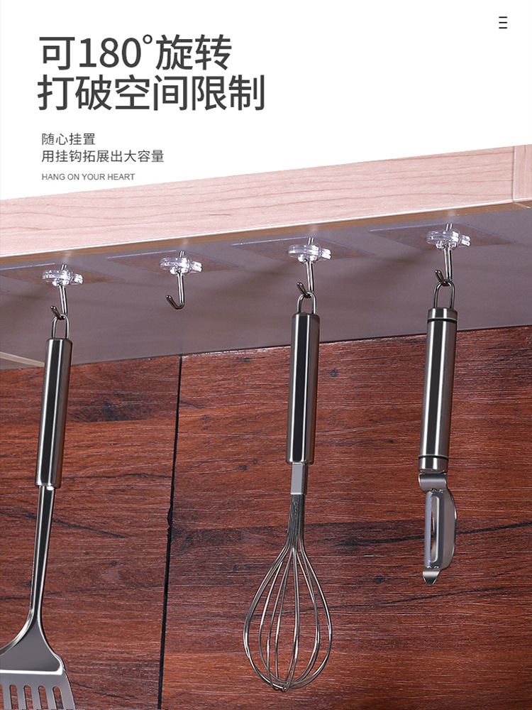 双慶無痕フックドア後掛けフックトイレ壁無痕無釘フックシングルフック透明金3194