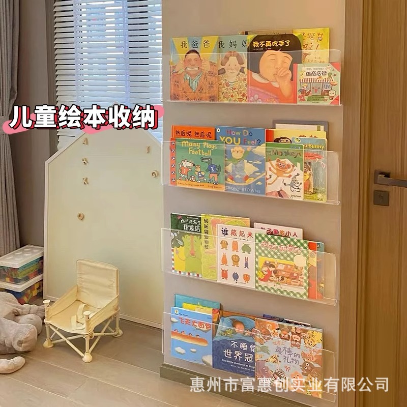 子供の本棚の壁掛けドアの後ろの通路の展示は雑誌の透明なアクリルを置いて穴を開けないで絵本の収納壁を読みます。
