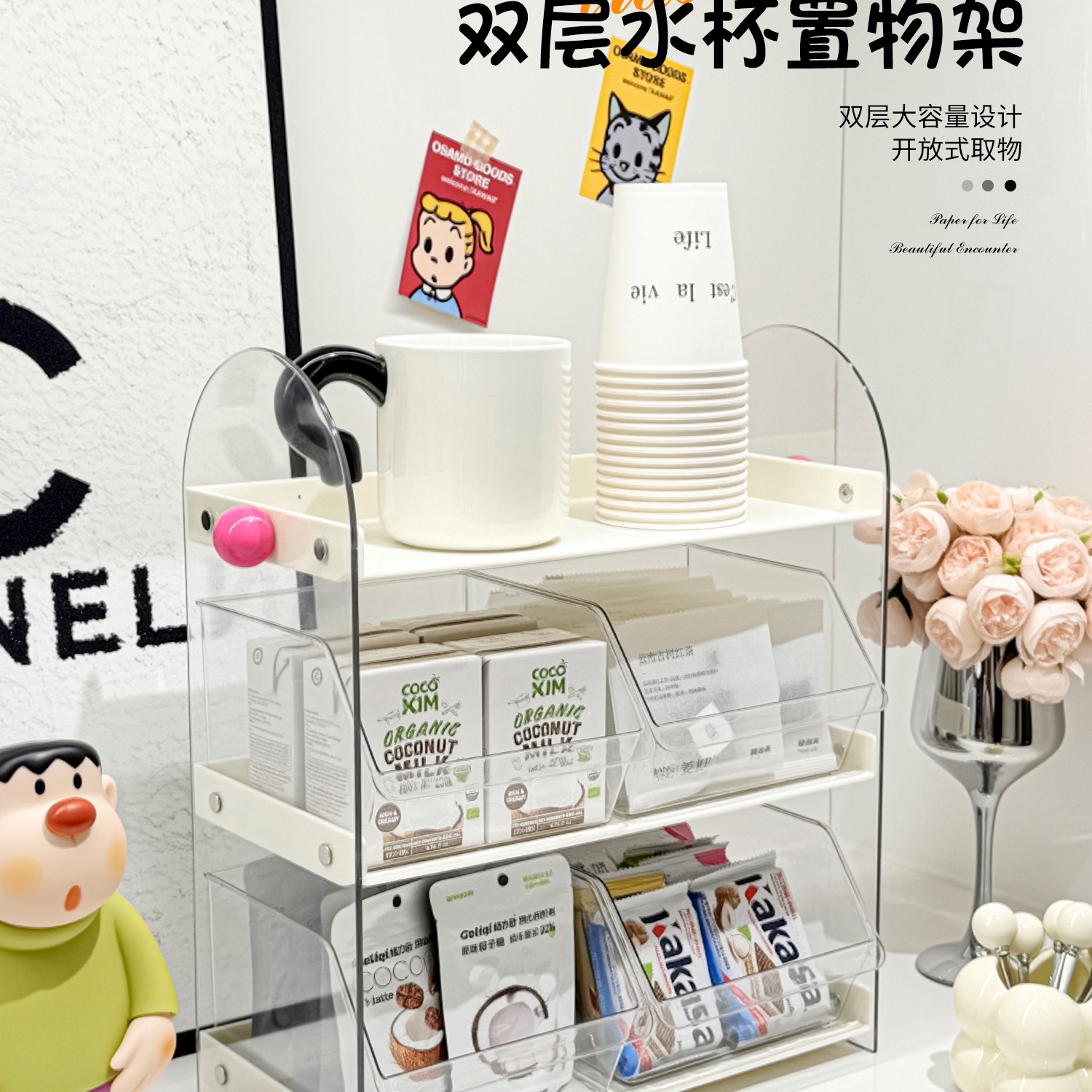 使い捨てカップ収納ラックデスクトップミルクティーバッグコーヒーカップ配置バーストロー紙コップ収納ボックス