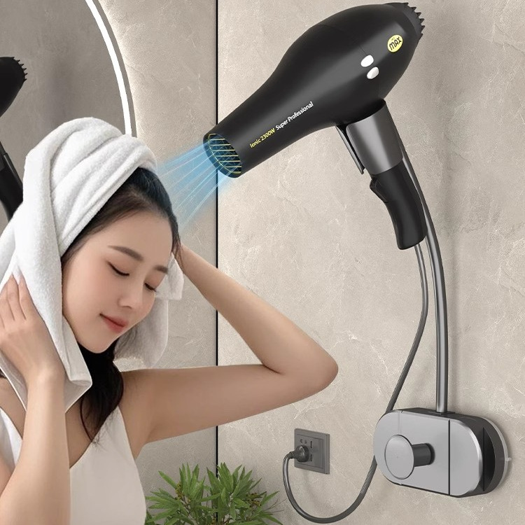 吸盤式ヘアドライヤーラック、ヘアドライヤー収納ラック、パンチングなしの洗面所ヘアドライヤー、洗面所収納ラック