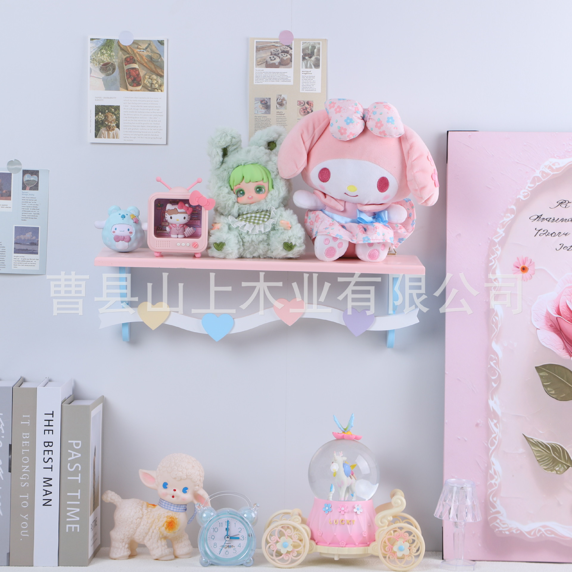 06YMins スタイルガーリーハート小さな新鮮なレースの壁掛け収納ラック木製玄関寝室コートラック収納