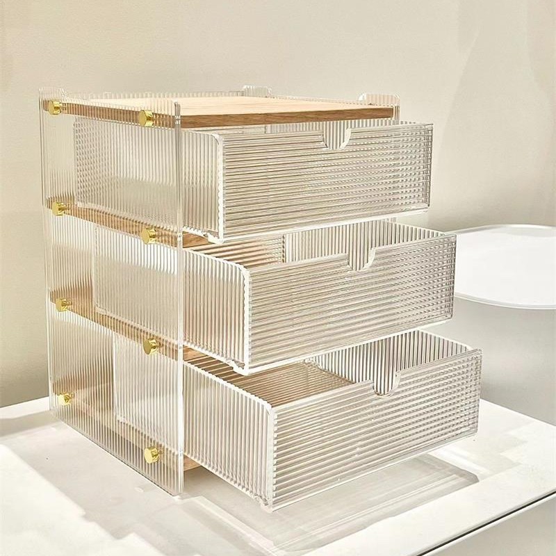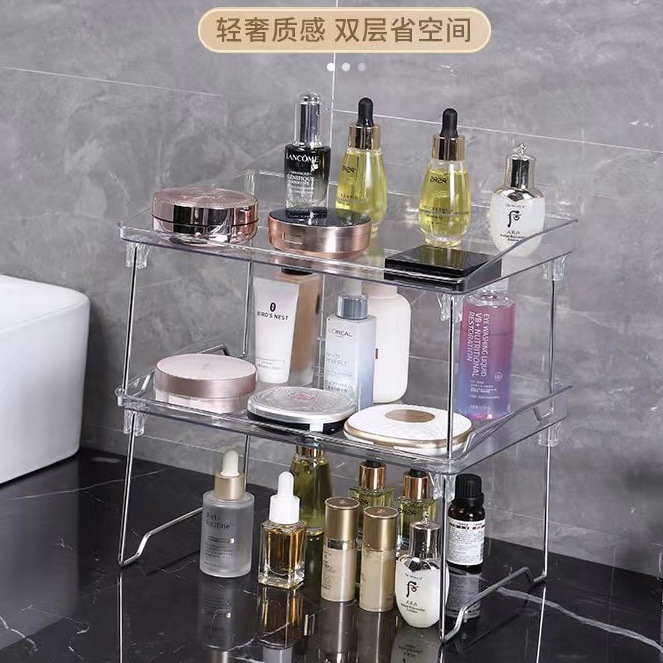 亚克力木制化妆品置物架香水护肤品收纳盒梳妆台轻奢风置物架