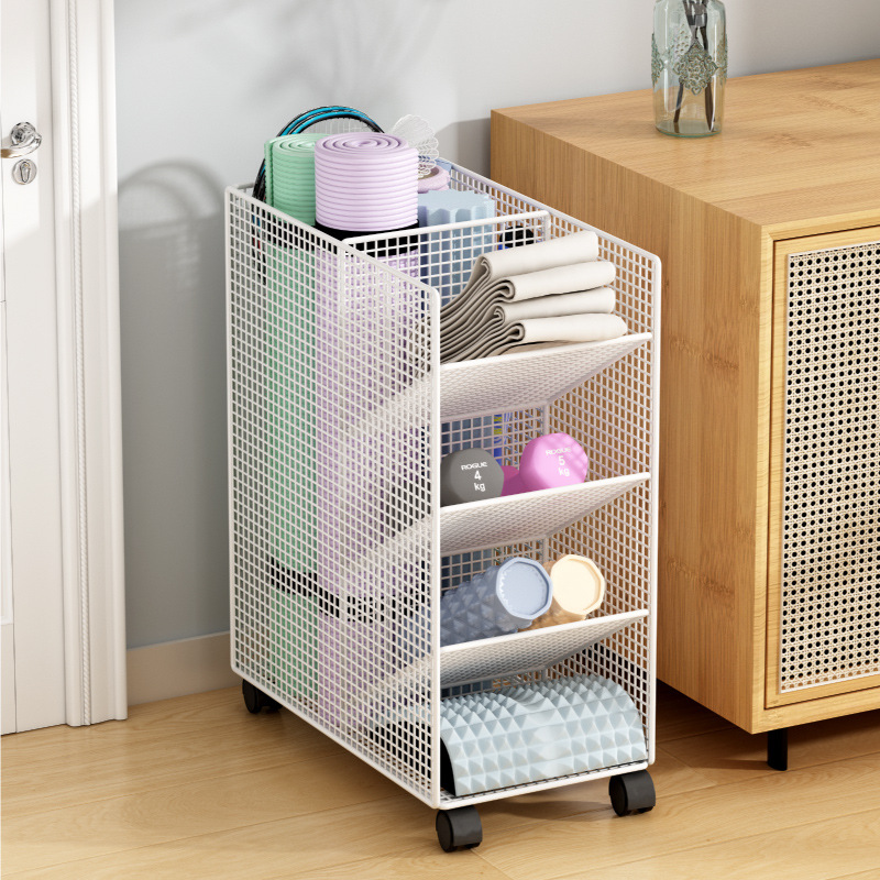 ヨガ収納かご付輪家庭用運動道具整理神器フィットネス器材収納棚挟み物棚