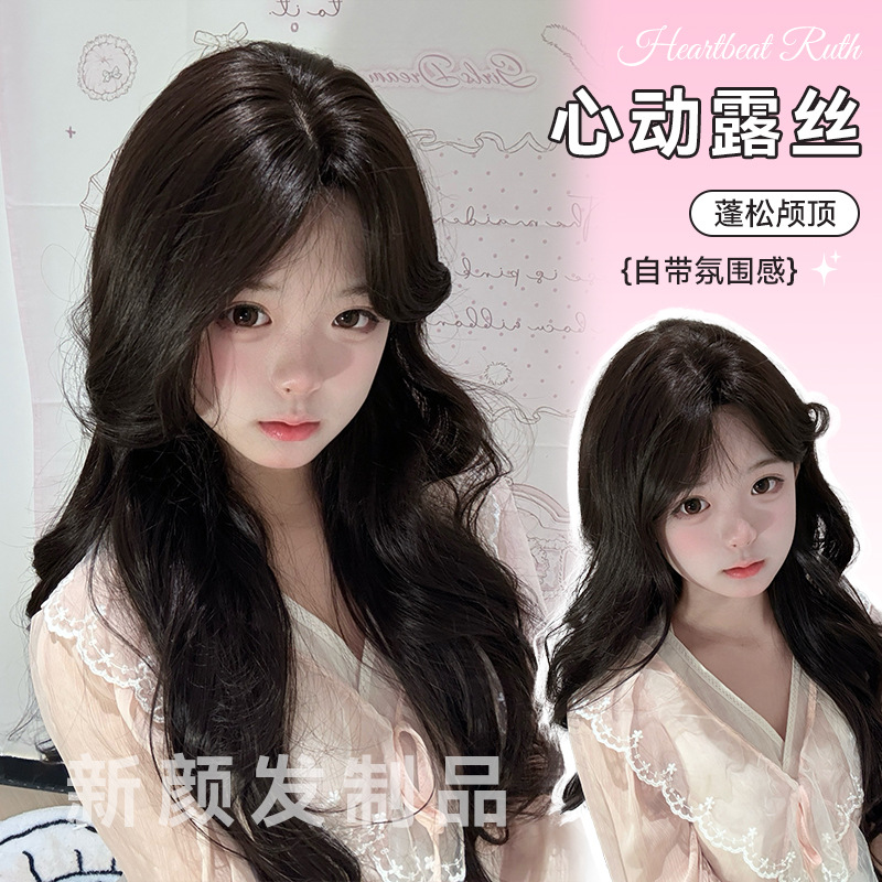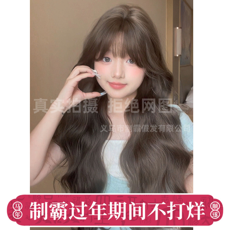 秋実かつら女性卸売りクロスボーダー日常ネット赤長巻き髪自然大波砕毛前髪全頭カバーかつら