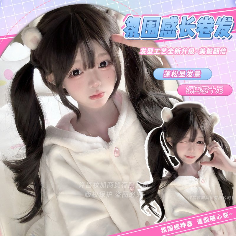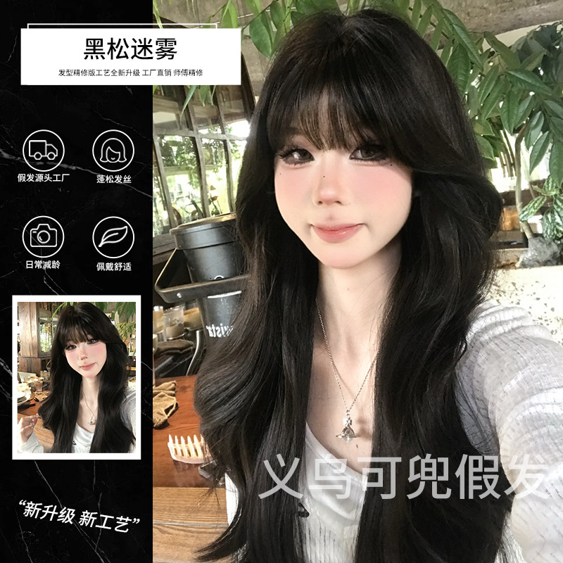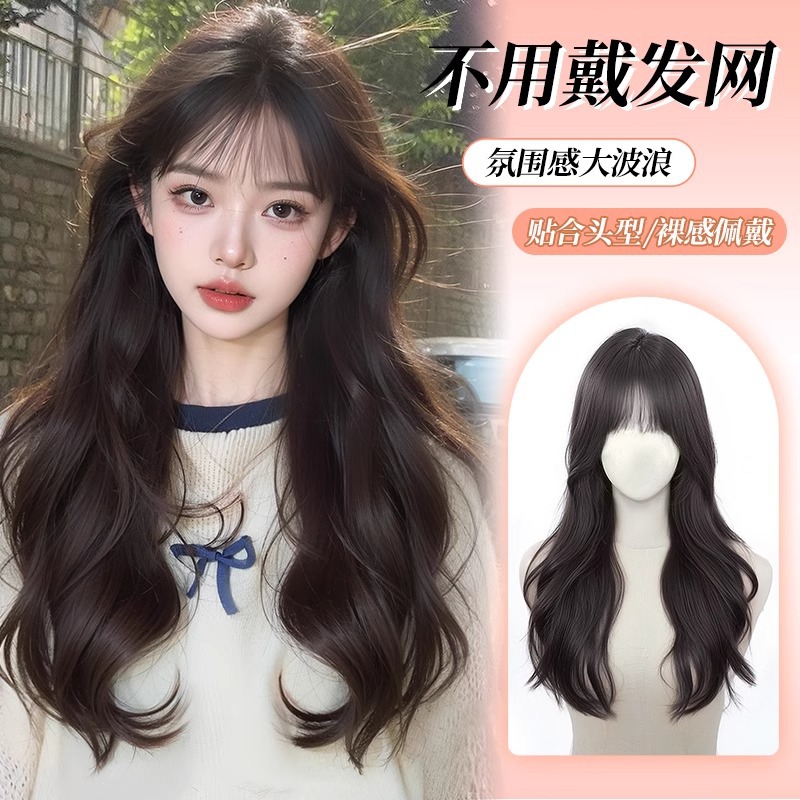 丸丸かつらロングカール女性ネットレッドキャスターlilota日常新作リアルナチュラルjkフルカバーウィッグ