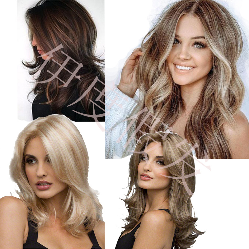 メイクアップネット赤かつら女长い髪ビッグ波长い巻き髪ミディアムロング髪ナチュラル全体カバー式かつらカバー
