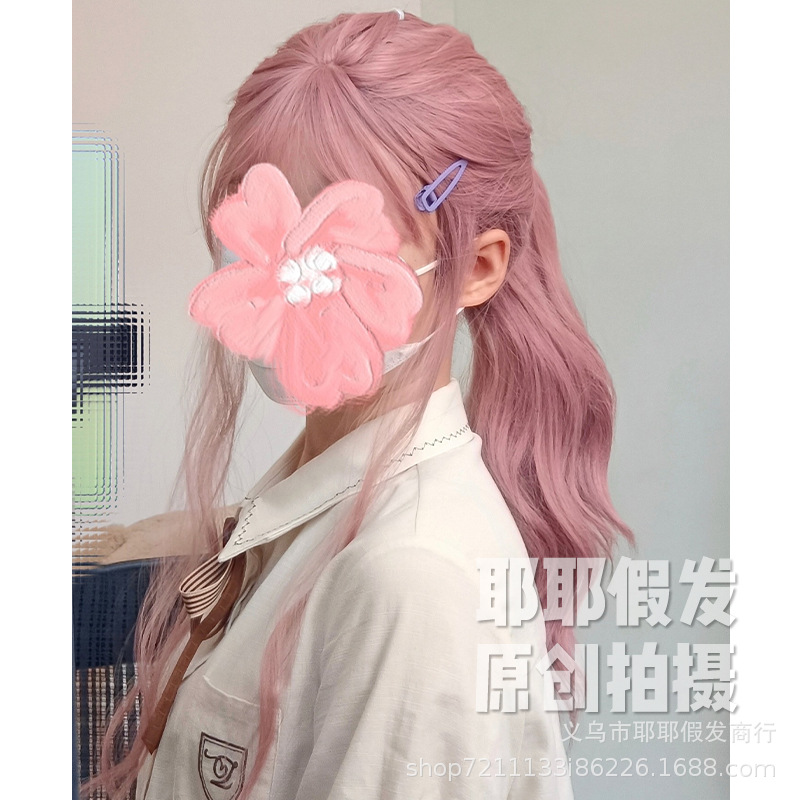 クロスボーダーのネットの赤いかつらの女性のピンクの長い巻き髪jk日常の新型のリアルな顔のlolitaの自然な全体のカバー式