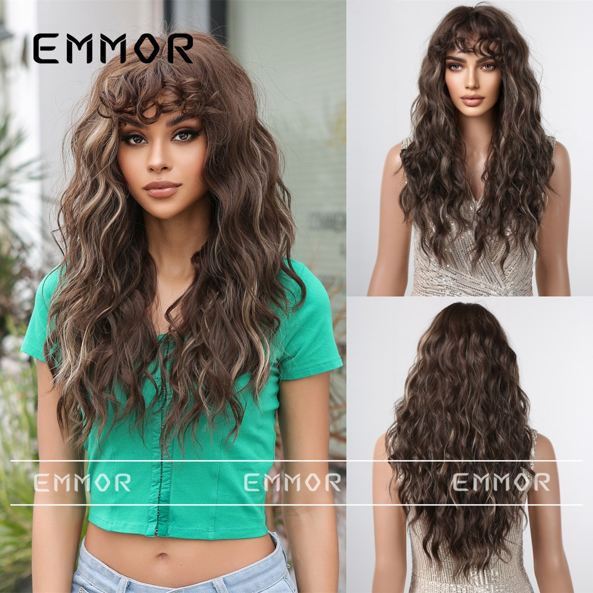 Emmore欧米の新型かつらスポットの中で、長いカールの黒いつや消しの高温糸のかつらの全頭カバーのメーカーを分けます。