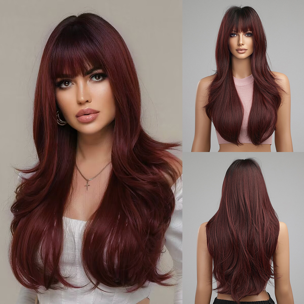 アマゾンクロスボーダー対外貿易欧米風斉前髪グラデーションワインレッドかつらメーカー直販