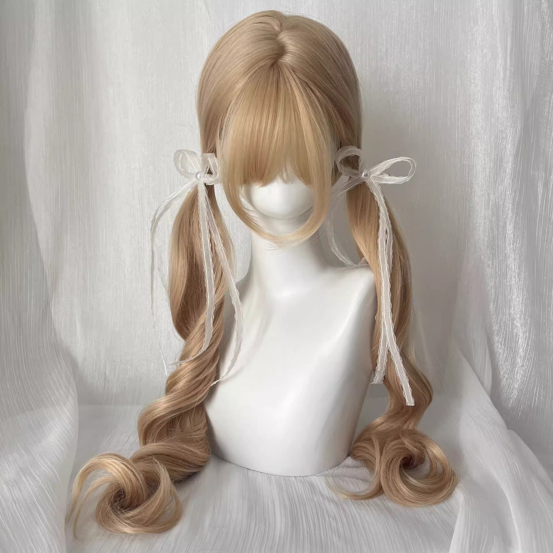 女性用ウィッグ 80cm ロング巻き毛 前髪あり スイートロリータ ナチュラルミルクティー プラチナ レディース 同スタイル フルヘッドギア