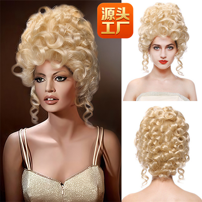 欧米の金色の祝日かつらcos高帽レトロな女性宮廷中世ヨーロッパ風の短い巻き頭カバーハロウィーンwig