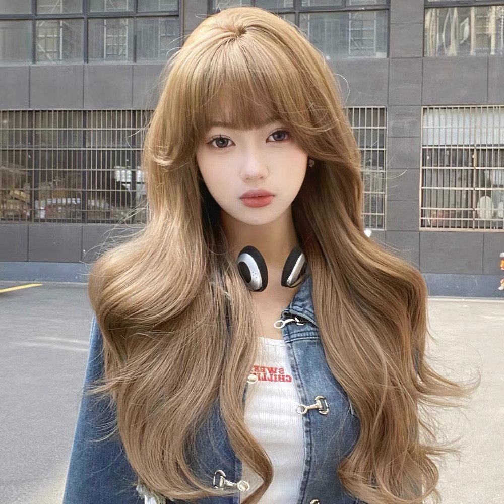 新品かつらレディースロング夏フルヘッドカバー式浅い亜麻色大きい波长いカールかつらlolitaかつら
