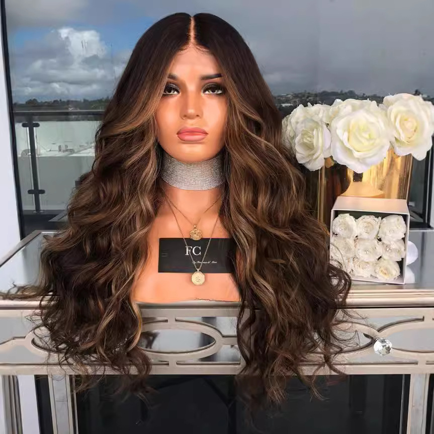 欧米のクロスボーダーのかつらの女性の化学繊維の中で大きい波の長い巻き髪の全頭カバーの対外貿易の商品の供給源の安定の現物の先発を分けます。