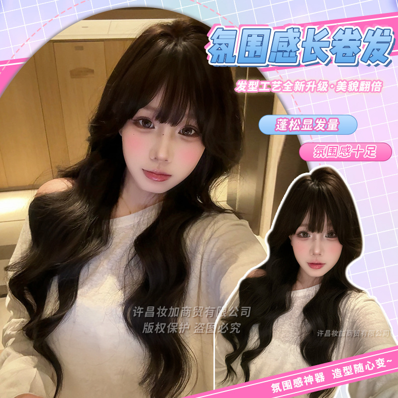 外国貿易クロスボーダーアイスシルクヘアバンドロングカーリーヘアふわふわカーリー化学繊維ウィッグヘッドギアキンキーストレート