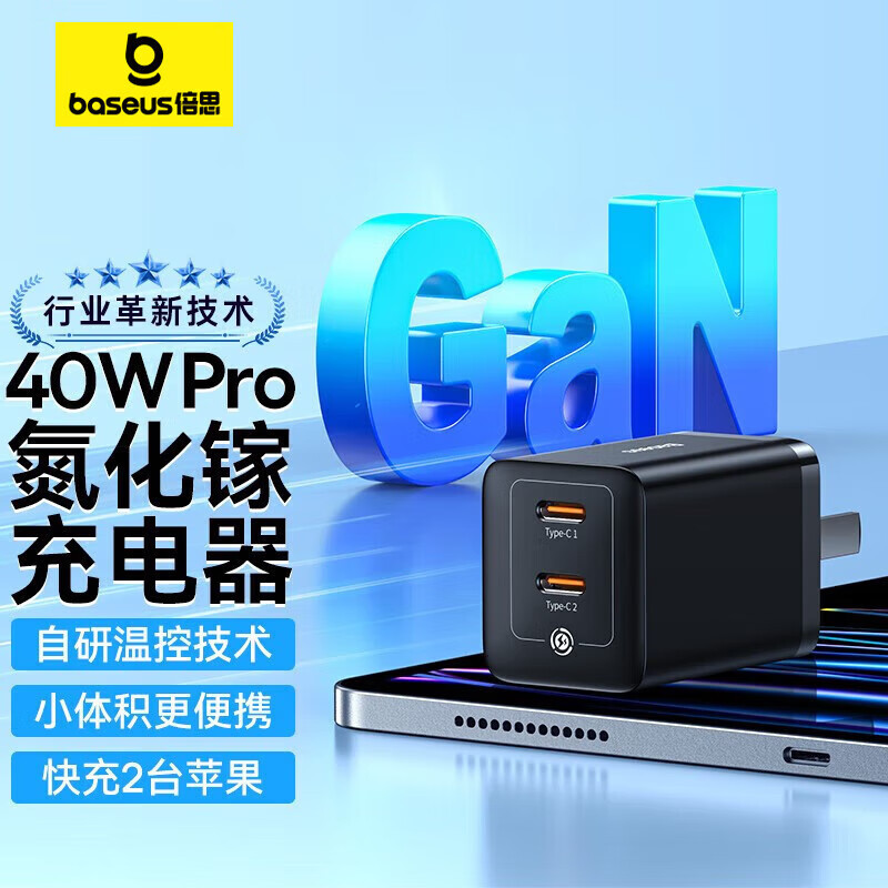 Baseus Apple 15 充電器 40W 窒化ガリウム デュアルポート高速充電充電ヘッド PD35W/20W と互換性あり iPho に適しています