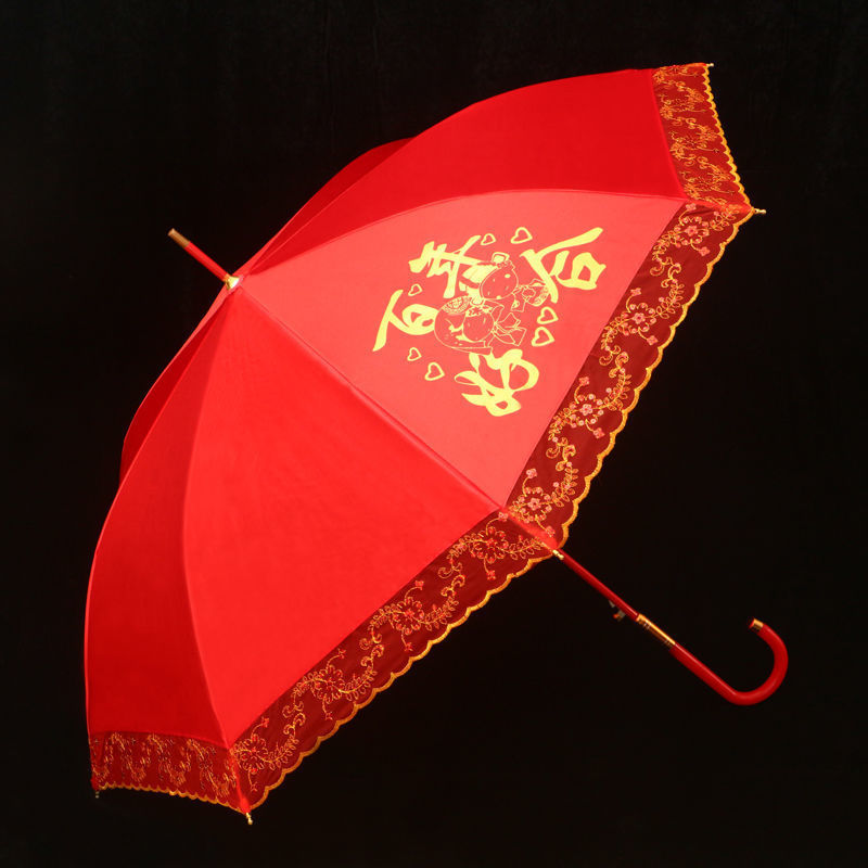大人用長柄傘、高級高級ブライダル傘、結婚式、中国風両用レース赤傘