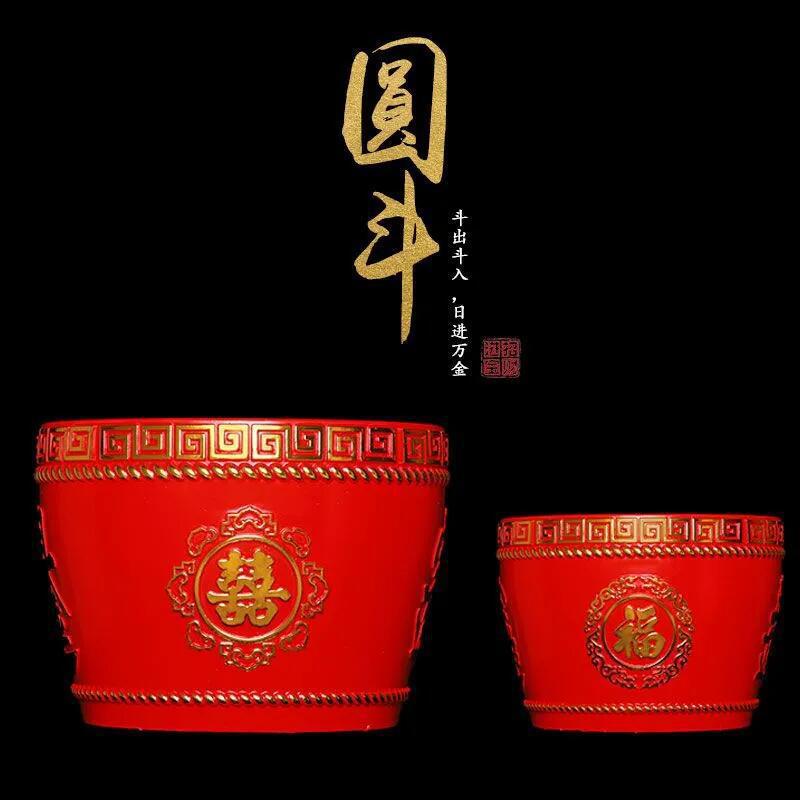赤い円斗旧式米斗寿斗喜斗天公喬遷開業結婚祝い置物アクリル子孫桶