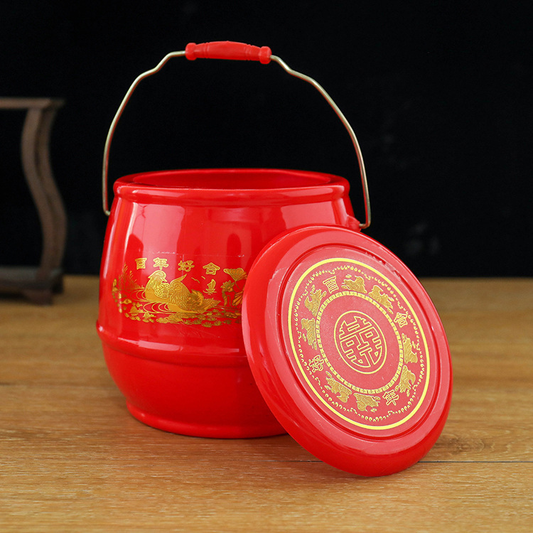 結婚式のエナメル製のげっぷ桶、赤い子孫のバケツ、蓋付きの高齢者用トイレバケツ、子供用の尿バケツ、トイレ、結婚式の贈り物用トイレ