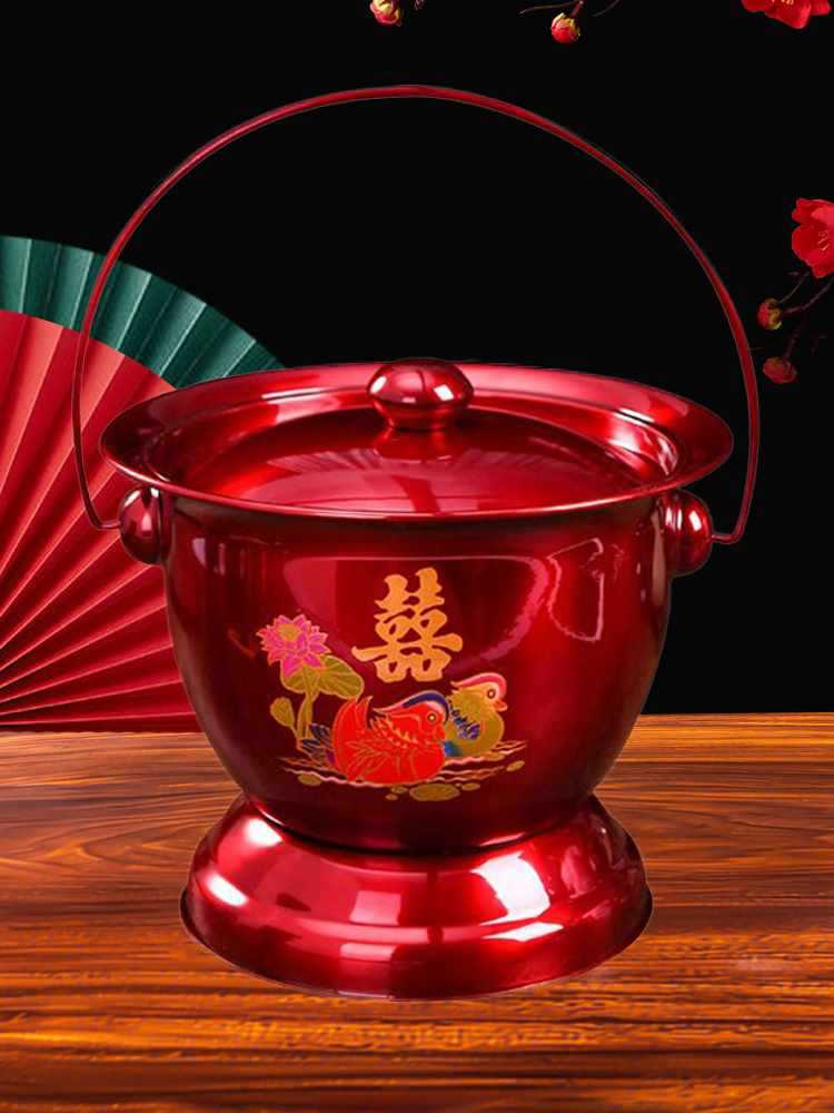 子孫バケツ、嫁入りセット、トイレ用具、赤いつば付きバケツ、女性の母家、結婚祝いの装飾品
