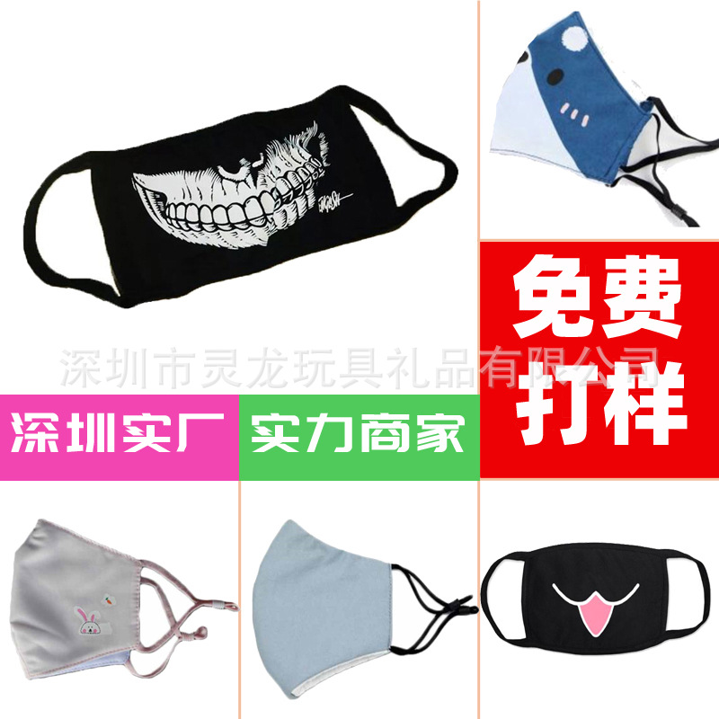 メーカーカスタムパイル耳防塵保温マスクニット布プリントマスク綿布人形マスク