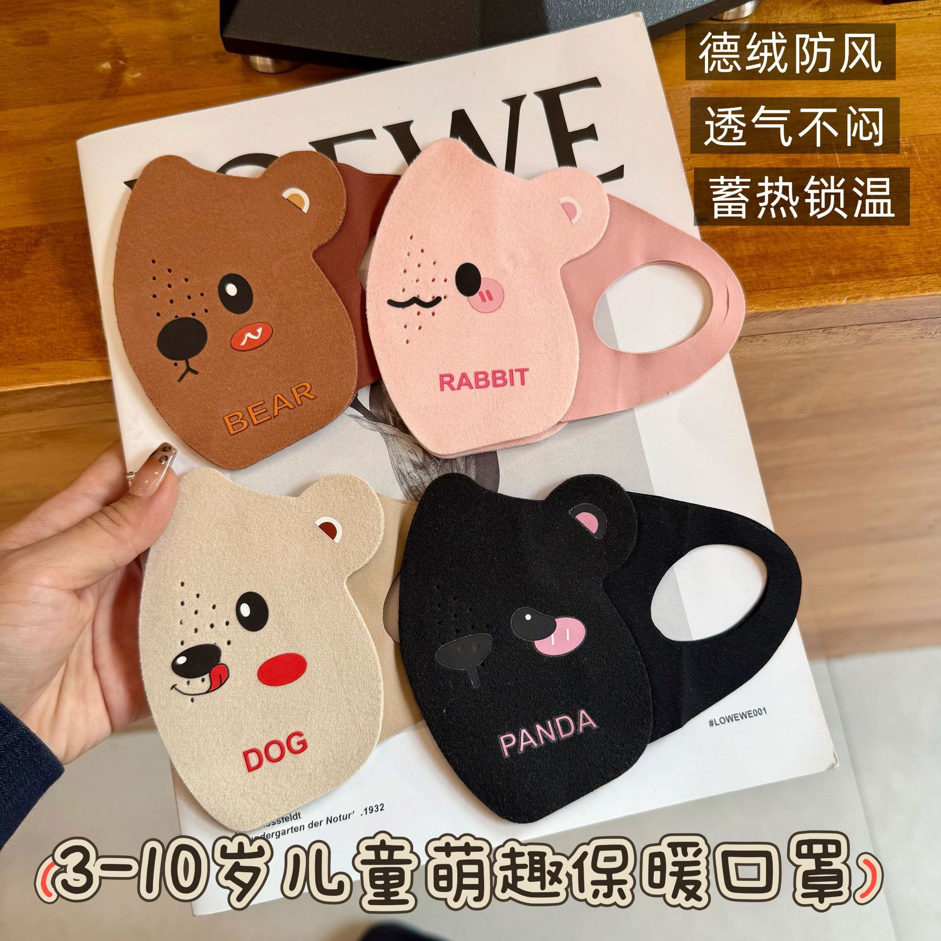 秋冬新型熊酢酸ウール子供快適保温通気孔男女児童騎乗防風学生マスク
