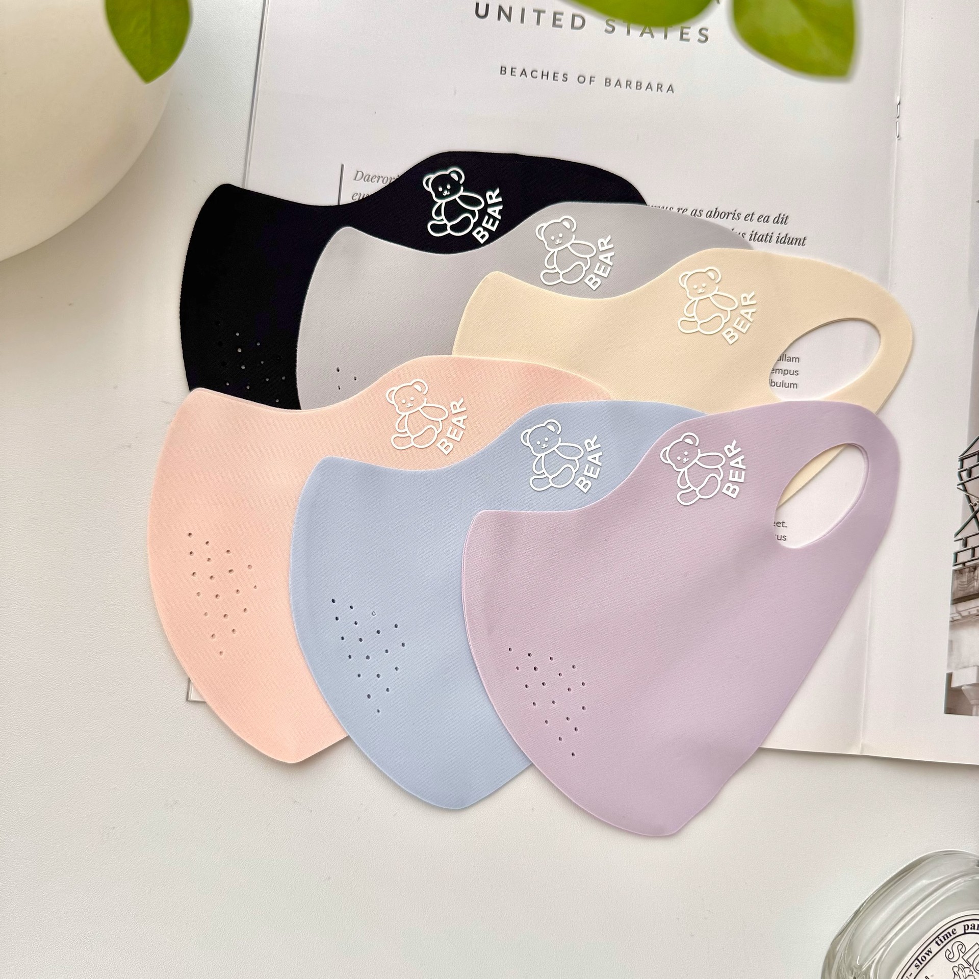 薄手2025春夏学生児童日焼け止めマスク熊プリント氷感通気保護目尻抗菌紫外線防止