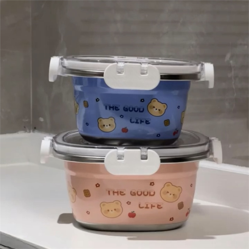 リトルベアステンレス鋼の蓋付き食品グレードの冷蔵庫専用フルーツシールボックス漫画学生弁当箱