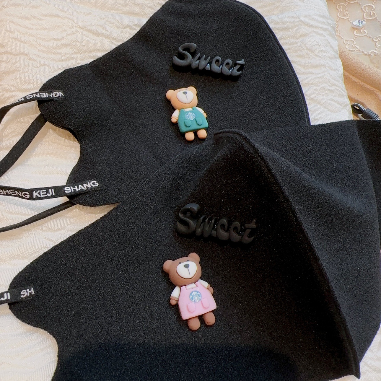 2024秋冬ファッションマスク自転車保温冬ベアーぬいぐるみ刺繍マスクかわいい保温マスク
